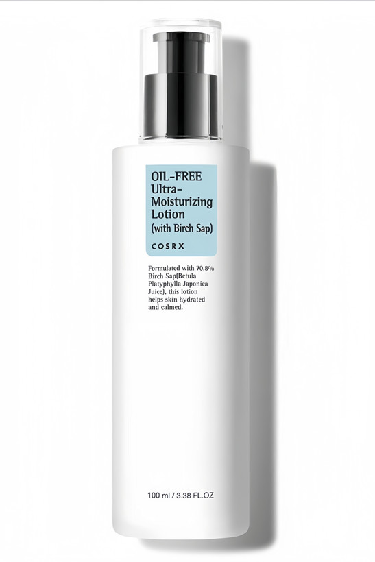 COSRX Oil-Free Ultra-Moisturizing Lotion با ۷۰٪ عصاره درخت توس (Birch Sap) یه فرمول فوقالعاده سبک، آبرسان، و بدون چربی داره که دقیقاً طراحی شده برای پوستایی که سریع برق میافتن یا به خیلی از کرمها واکنش نشون میدن.